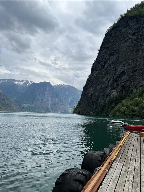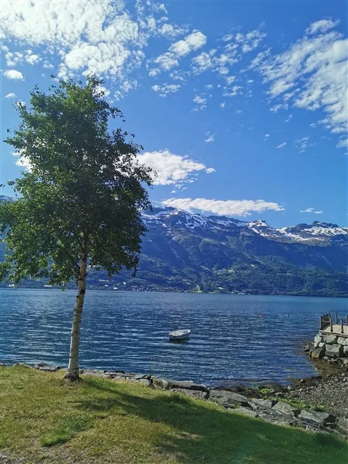 Vakarienei pasirenkame vienintelį restoraną prieplaukoje, kuris ir yra kempingo recepcija. Kas gali būti gražiau, nei sėdėti prielplaukoje ir stebėti lėtai fiordo vandenis pjaustančius elektrinius keltus.
