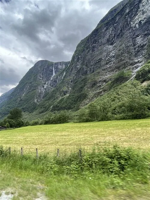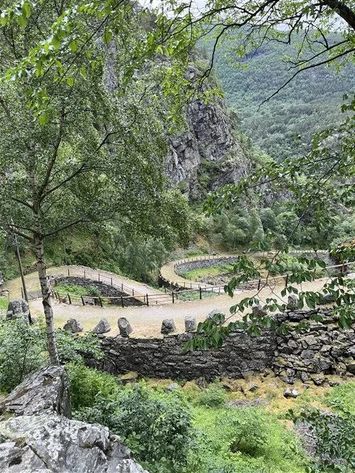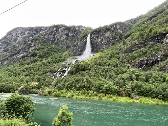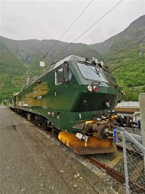 Pravažiuojame iš urvo kliokiantį krioklį bei drauge su dviratininkas ropščiamės aukštyn. Vis tik vaizdai nepasirodė mums tokie įspūdingi ir pusiaukėlėje sukamės atgal. Stabtelime Flam miestelyje, kur apsilankome nemokamame gelžinkelio muziejuje bei galime apžiūrėti garvežius bei drezinas. Šiek tiek istorijos pamokų ir toliau į kelią. Saulė pasislėpė ir beliko tik lietus.