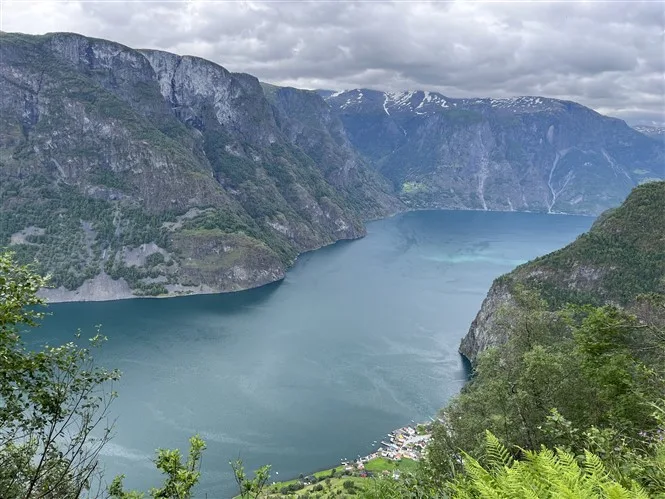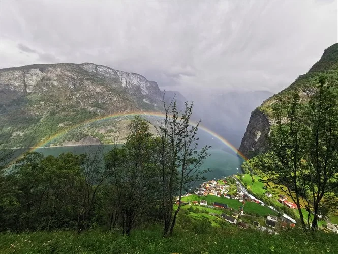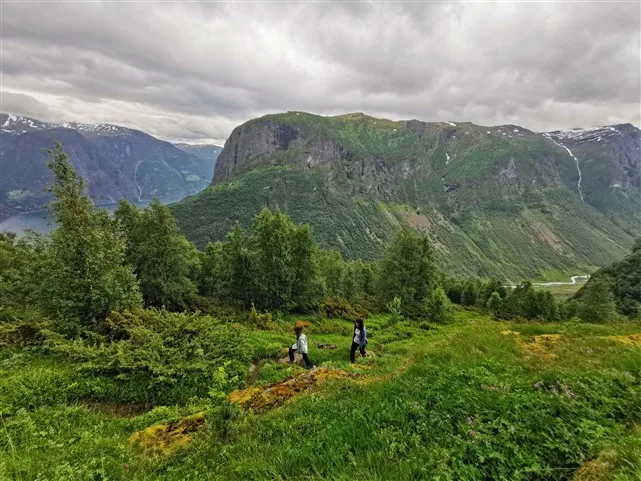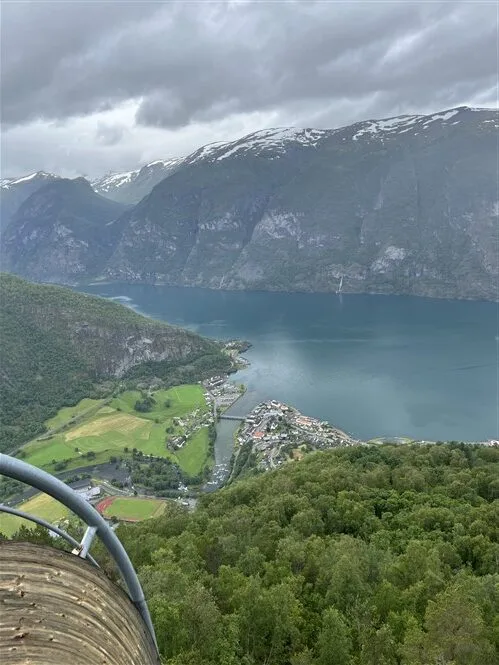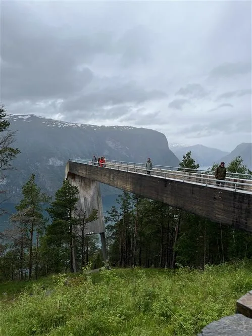 Užsikabarojame su Pabaisiuku iki apžvalgos aikštelės Stegastein. Kelias vingiuotas, o dar ir populiarus, tad visos transporto priemonės nuo kemperių iki motociklų dūsaudamos ropščiasi aukštyn. Nuo apžvalgos aikštelės net ir apniukusiu oru vaizdai puikūs.