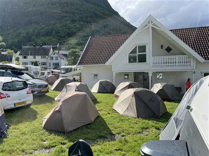 Nakvynę buvo suplanavę Eidfjord miestelyje, kuris labai jau turistiškas ir gyvenantis iš kruizinių laivų. Savo turizmo liga užkrėtęs ir kempingą, tačiau mes sugebėjome įsiparkuoti tarp blizgančių kemperiukų. Na ir pirmą sykį teko susidurt, kad karštas vanduo indams plauti gali būti mokamas.