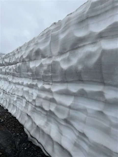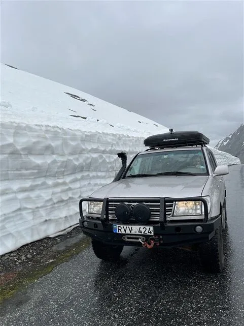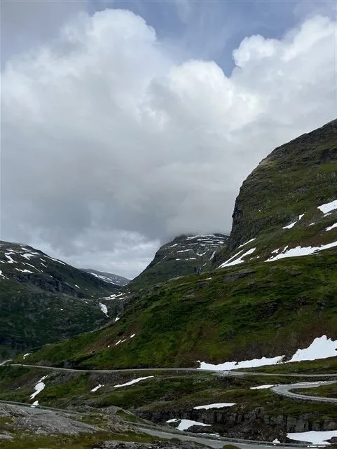 Galime važiuoti geresniu keliu, bet prastesniu juk įdomiau. Ir čia pamatome nuoroda – Gamle Strynefjellsvegen. Varom? Varom! Kas kad kelionės laikas pailgėja daugiau nei valanda… Keli statūs vingiai ir iš pavasariškai rudeniškos karalystės atsiduriame tikroje žiemoje. Sniego pusnys abipus kelio virš mūsų automobilio, o tai beveik 2,30 centimetrų.
