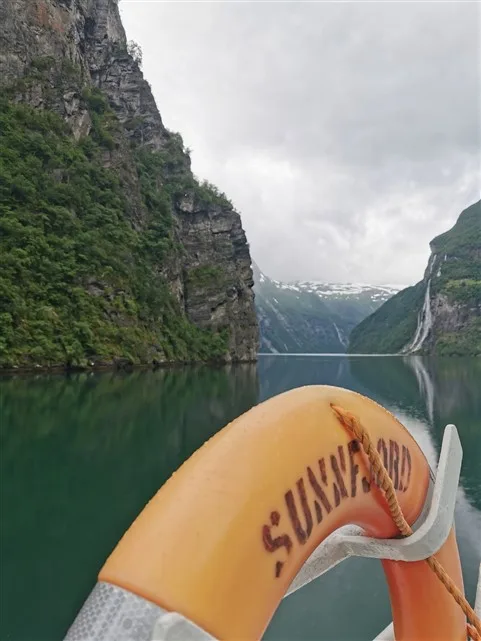 Greiti pusryčiai kempinge. Dar spėjame šnektelti su lietuviais, keliaujančiaus į Lofotenus. Labai smagu susitikti bendraminčius. Skubame, kad spėtume į keltą. Pačiu laiku ir su automobiliu jau stovime kelto denyje, kuriuo kelsimės Geiranger fjordu iki Hellesylt miestelio.