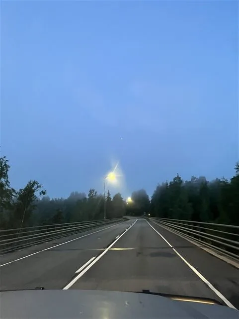 Iš kelto iš karto į kelią. Turime pilnas 6 valandas. Gerai, kad saulė viso kelio metu nusileido tik kokiam pusvalandžiui. Pro miegančią Suomiją tuščiais keliais skriejame į Tallink keltą.