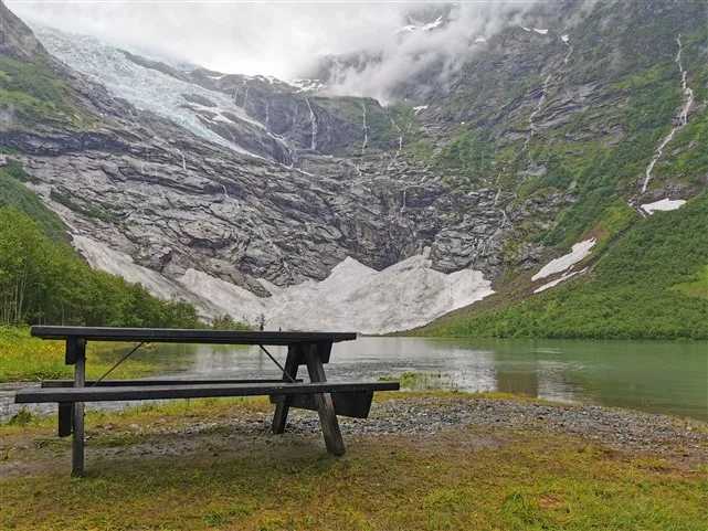Pirmasis sustojimas – interaktyvus Norvegijos ledynų muziejus. Įdomios architektūros pastatas, įsikūręs didžiausio Norvegijos ledyno Jostedalsbreen pakraštyje.