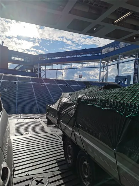 Atvykstame laiku ir kiek paklaidžioję stojame į eilę prie kelto. Kaip ir vietoje. Tiesą, sakant jei prieš tai keltas buvo vau, tai šis visai apgailėtinas. Ne tik dėl pusės neveikiančių paslaugų, didelių kainų, bet ir po visą keltą sklandančio wc patalpų dvoko.