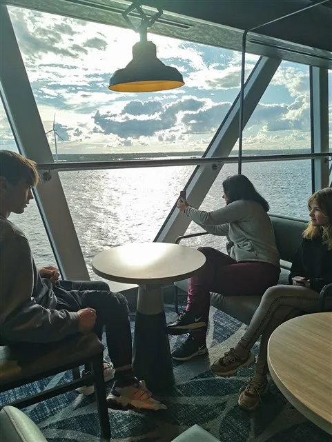 Keltas Vasa bus vidurnaktį, o pirmas keltas iš Helsinkio į Taliną 8 valandą. Tad perkam bilietus ir einame pasidaryti po vieną moderniausių keltų. Nes jis, žinoma, varomas elektra. Vau. Plaukiame taip tyliai.